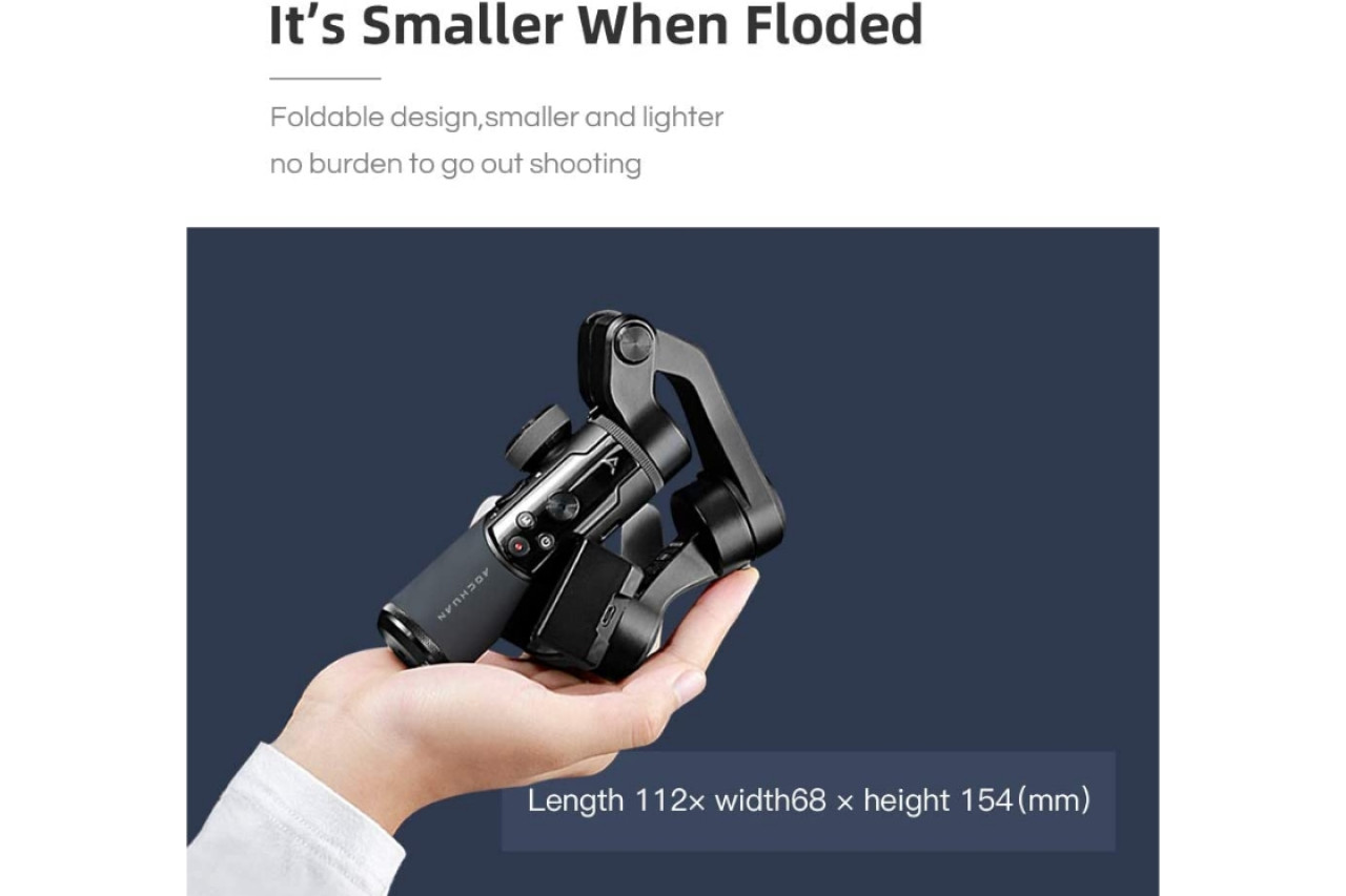 Aochuan Smart XRは、112 × 154 × 68mmの小さな折りたたみ式サイズで370gの軽量を特長とし、最大ペイロードは250gで、外からの撮影に便利です。 3軸安定化制御システムにより、移動シーンを鮮明に表示できます。