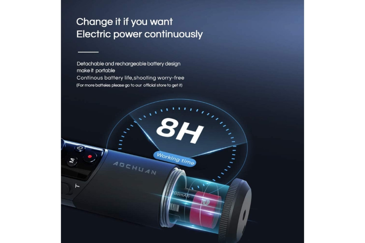 SMART XRは、充電可能な3200mAh 18650リチウムイオンバッテリーを使用して8時間の実行時間を提供します。取り外し可能な設計により、交換用バッテリーを交換して撮影時間を長くしたり、パワーバンクを介してジンバルを充電したりできます。